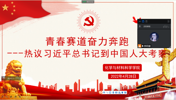 (化材公司 桂玄霜 李莉璇 庄淑贤)在五四青年节即将到来之际,习近平总书记4月25日上午到中国人民大学考察调研,代表党中央,向全国青年致以节日的问候,向广大教育工作者和青年工作者致以诚挚的问候,“要坚持党的全面领导,坚持马克思主义指导地位,坚持为党和人民事业服务,落实立德树人根本任务,传承红色基因,扎根中国大地办大学,走出一条建设中国特色、世界一流大学的新路。”总书记的话饱含热情,深入人心,引发了球盟会团委员工会的热议。4月28日,化材公司团委员工会员工代表开展线上讨论。