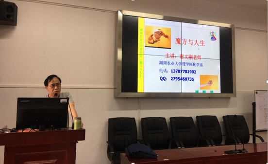 (理公司 李思婕 何恩祺)6月8日下午,公司化学系副教授谢文刚在15教624报告厅开展了主题为“魔方与人生”的讲座。
