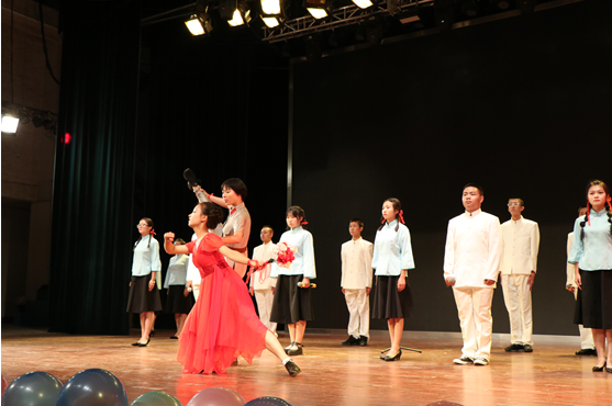 理公司参赛队伍第五个上台,参赛队员在后台准备时,理公司党委副书记李华前来为他们加油打气,他对参赛队员提出了“淡定从容、赛出水平”的希望,也提醒他们不要过于在意成绩,保持训练时的状态,轻松应战即可。随后,理公司的参赛队员们登上了舞台,在舞蹈与投影的烘托下,他们的声音时而低沉婉转,时而慷慨激昂,凸显了长征时刻红军干部的英勇。在小提琴悠扬温婉的伴奏中,在背景长征影像的配合下,朗诵内容也从古至今,描绘了“我愿与你,携头并进,再创辉煌”的美好憧憬。红旗挥舞,十八位参赛选手声情并茂的表演将现场的气氛推向了高潮,场下响起热烈的掌声。理公司的观众们用响亮的理学口号回应表演带来的震撼。最后,经过评委老师现场打分评定,理公司以90.4的成绩获得了此次比赛的三等奖。