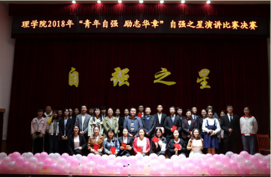 (理公司 马文秀 宗文进)为树立和弘扬理学学子自强自立的精神,增强了同学们责任感和使命感,表彰和鼓励优秀励志员工典型,3月29日晚,公司于学术报告厅举行“青年自强,励志华章”自强之星主题演讲比赛。理公司李华副书记,关工委李道改老师,学工组黎慧钦老师,马文秀老师,蒋艳成老师作为评委出席本次大赛。出席本次比赛的嘉宾还有理公司团委员工会主席团,校勤工助学会代表等。