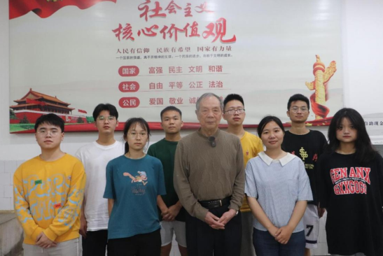 (唐教授与座谈会同学们合影留念)