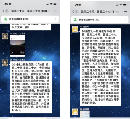 本次活动从10月8日正式启动,围绕运动打卡、理论学习、金句分享展开。师生们通过微信运动小程序打卡记录运动步数。利用课余时间,自主进行政治理论学习并提交学习图片。建立打卡群,在群中打卡运动记录、分享学习心得从而获取相应积分。以寓教于乐、潜移默化的方式,让同学们在运动健身的同时更好地学习和掌握中国共产党成立以来的光辉历程,从而进一步教育引导化材学子继承优良传统,传承红色基因。公司也准备了相关红色书籍作为活动奖品。