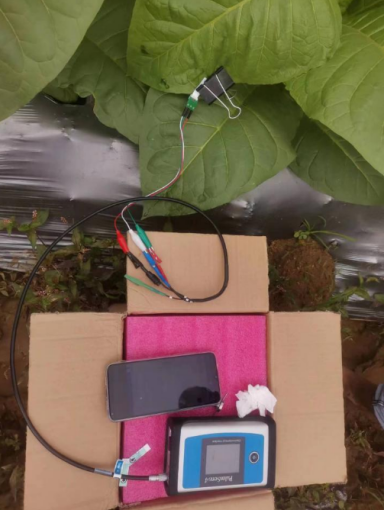 当前正值烟草生长的重要季节,来到生产基地,作物智能传感技术与装备课题组的员工们就烟草的生长情况,与正在耕作的烟农展开交流讨论。在了解到当地烟农普遍无法具体辨别烟草品质的问题后,课题组的员工们亲临田间地头实践,通过其最新研发的产品—烟草智能检测系统,采用智能手机实现了对烟草中关键成分烟碱的现场原位智能检测。烟草智能检测系统能够对烟草中烟碱含量实现活体智能化检测,完成对烟草的化学成分与烟碱含量的相关研究控制。该设备拟将核心技术比率型直接电化学传感器用于研究烟草活体在线检测烟碱,对于烟草品质的把控、烟草的经济价值的提升以及降焦减害,具有重要意义。针对分析结果并结合烟草品种的具体情况,方便农户对种植环境进行适时改善,为当地制定出切实可行、科学合理的改良方案,有助于建设智慧农业,以满足农业的信息化,精准化。