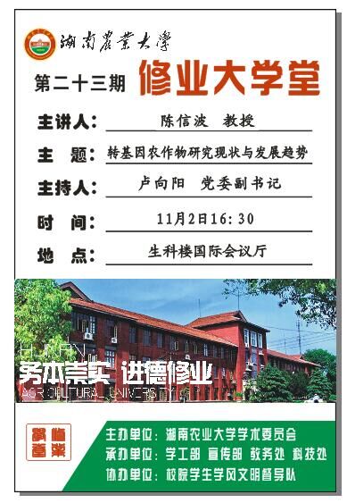 第23期修业大学堂——陈信波教授主讲“转基因农作物研究现状与发展趋势”