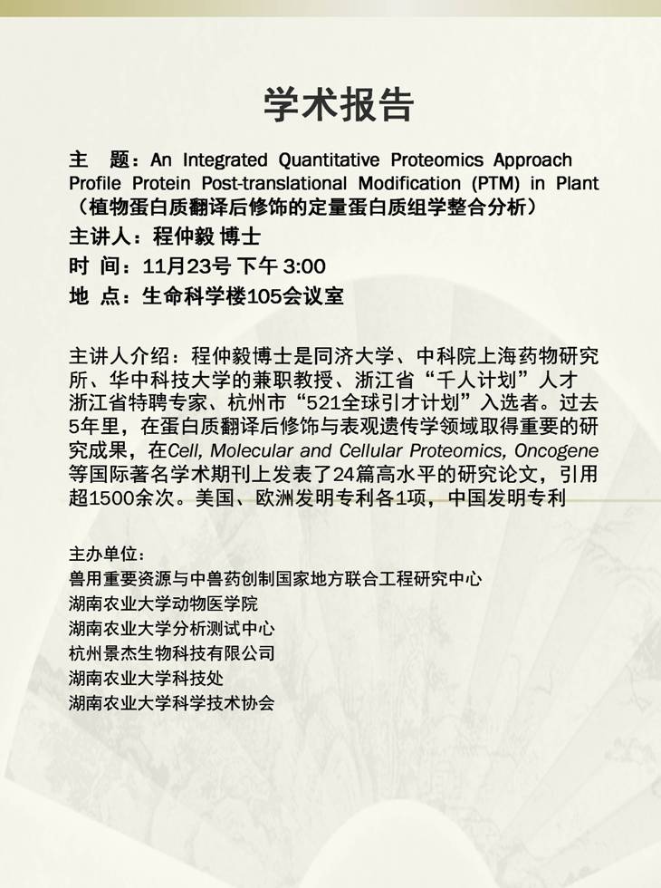 An Integrated Quantitative Proteomics Approach to Profile Protein Post-translational Modification (PTM) in Plant(植物蛋白质翻译后修饰的定量蛋白质组学整合分析)