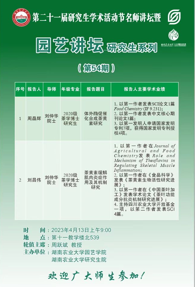 园艺讲坛--研究生系列(第54期)