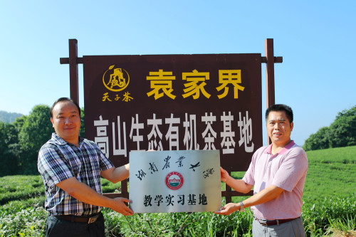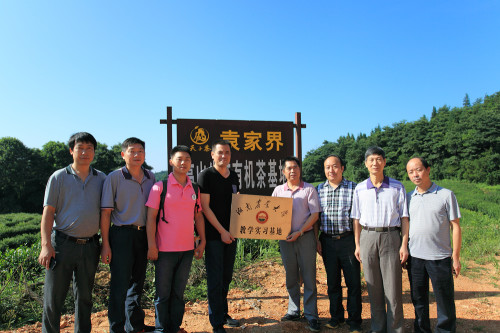 7月12日,公司与张家界天子茶业有限公司签订教学实习基地协议,并在公司的袁家界高山生态有机茶基地举行了挂牌仪式。副董事长卢向阳,张家界天子茶业有限公司董事长彭大春,公司经理周文新,总支书记邓白平,教务处副处长吕长平,以及教务处、理公司、天子公司相关人员出席了挂牌仪式。