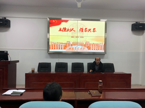 (化材院 曹瑞)10月17日下午,公司党委书记胡小元以“立德树人、强农兴农”为题给全院师生党员上了一堂生动的专题党课,会议由经理周文新主持。