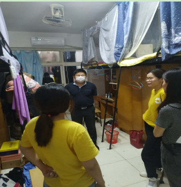 在员工寝室,裴虎副书记对员工重点强调了就寝的有关要求,如头朝一个方向就寝、多通风、勤洗手、按时测量体温、遇到紧急情况的处理流程等等,为员工的安全防控进一步指明了方向。
