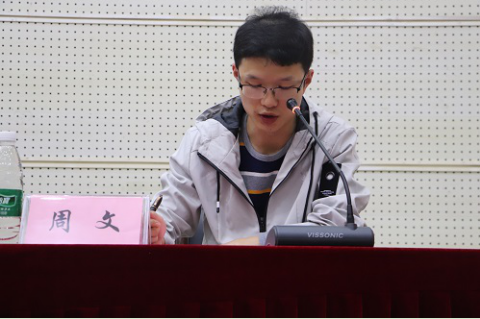 在清脆嘹亮的团歌声中,大会拉开帷幕。首先,由第二十三届团委员工会主席暨第九届文明督导队队长贺德兵同学做上年度工作述职报告,他说道:“我们秉持着正确的指导思想、核心理念、宗旨,全面深化打造了小花菜团学工作品牌,同时紧紧抓住疫情防控和日常工作两条主线,深化打造了‘1234’团学工作体系。”随后,团委书记周文老师宣读了第二十四届团委员工会聘任名单。