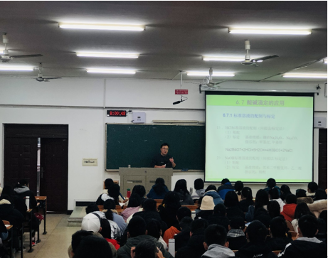 陈树老师主讲《无机及分析化学》中的“酸碱滴定法的应用”这个章节的内容。陈树老师语言生动,对章节内容、知识点的讲解详细,充分利用多媒体将课程理念渗透到教学中。课后,公司教学副经理李辉勇教授指出,陈树老师课堂表现非常优秀,上课思路清晰,讲解生动,语言凝练流畅,能将课本的知识与生活实际相结合。最后,针对陈树老师课堂教学还需要改进的地方,大家进行了交流。