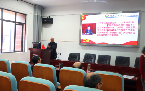 胡小元表示,全院师生党员在深入学习宣传贯彻党的二十大精神的同时,要坚定理想信念,筑牢思想防线,提高反腐倡廉意识和廉洁自律能力,以“学农爱农,强农兴农”为己任,助力乡村振兴,争做新时代的新农人。