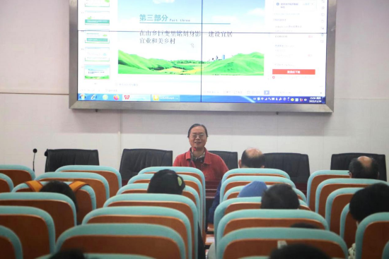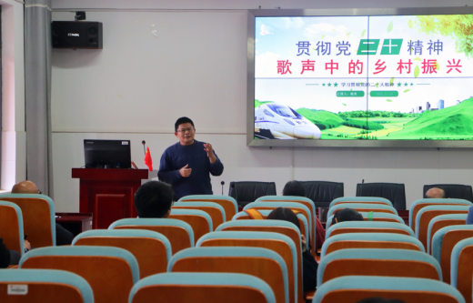 会议第二阶段,党委副书记裴虎以《贯彻党的二十大精神—歌声中的乡村振兴》为题,用《希望的田野上》《中国椒傲》和《在山乡巨变里铭刻身影》三首歌为媒介,为师生党员们深刻阐述了乡村振兴的重大意义和基本内涵,寄望湘农学子们在建设“宜居宜业和美乡村”中铭刻身影。