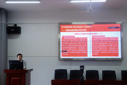 汤帮耀围绕习近平新时代中国特色社会主义思想的理论框架,就如何奋力谱写创新人才培养新篇章授课。他表示,要深刻领会“两个坚持”,牢记“六个坚持”的方法论,切实把习近平新时代中国特色社会主义思想贯彻落实到党和国家工作的各方面和全过程。他强调,要学习贯彻新思想,提升公司创新人才培养能力,全院教职工要忠于党的教育事业,把党的创新理论运用到贯彻落实党的二十大提出的重大战略部署中去,牢记立德树人根本任务的要求,营造教学相长的人才培养氛围。