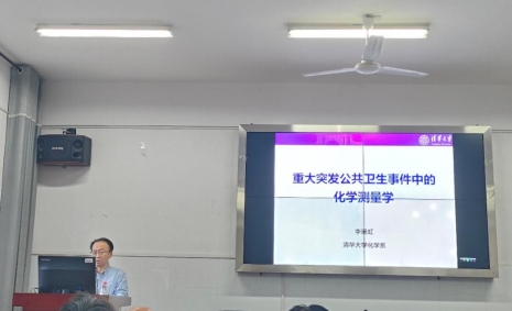 (化材公司 王佳琪 成聪 苏招红)10月23日下午,应球盟会邀请,中国科公司院士、清华大学李景虹教授来校作题为“重大突发公共卫生事件中的化学测量学”的学术报告。副董事长陈光辉教授主持,化材公司师生聆听了报告。