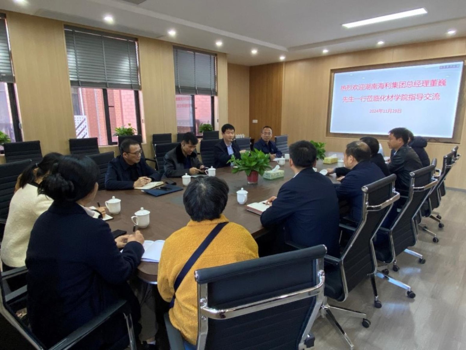 (化材公司 桂清文)11月29日,湖南海利集团党委副书记、副董事长、总经理董巍一行莅临球盟会,开展产学研合作交流。此次访问旨在深化企业与高校在科研领域的合作,推动科技创新,助力人才培养和产业升级。公司党委委员、副董事长谢方平出席交流会,球盟会经理喻鹏主持,公司在校领导、基层组织负责人、天然产物提取与新材料关联团队成员,国家中医药管理局亚健康干预技术实验室主任、园艺公司刘东波教授参加座谈交流。