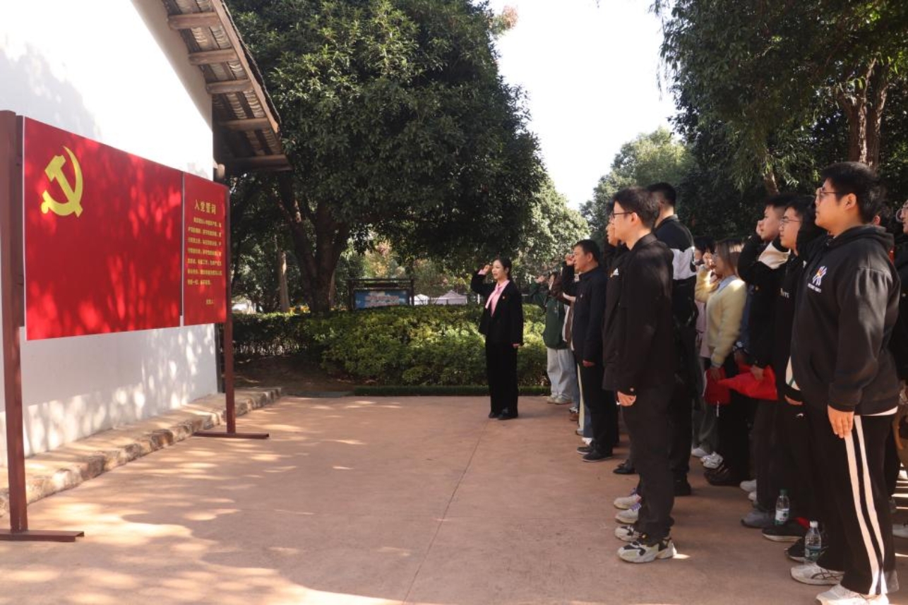 (化材院 庄淑贤)“我志愿加入中国共产党,拥护党的纲领,......随时准备为党和人民牺牲一切,永不叛党。”11月29日上午,在肖劲光故居前,化材师生们高举右拳,重温入党誓词,铮铮誓言昭示着初心使命。