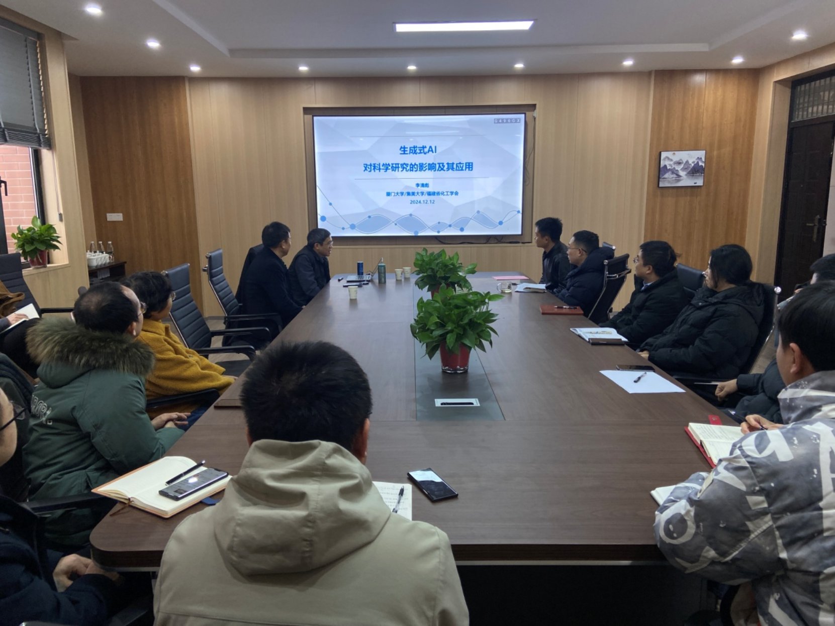 2024年12月13日上午,厦门大学李清彪教授应邀到公司开展学术交流,并作了题为“生成式AI对科学研究的影响及其应用”的学术报告。报告由球盟会经理喻鹏主持,公司师生代表聆听了此次报告。