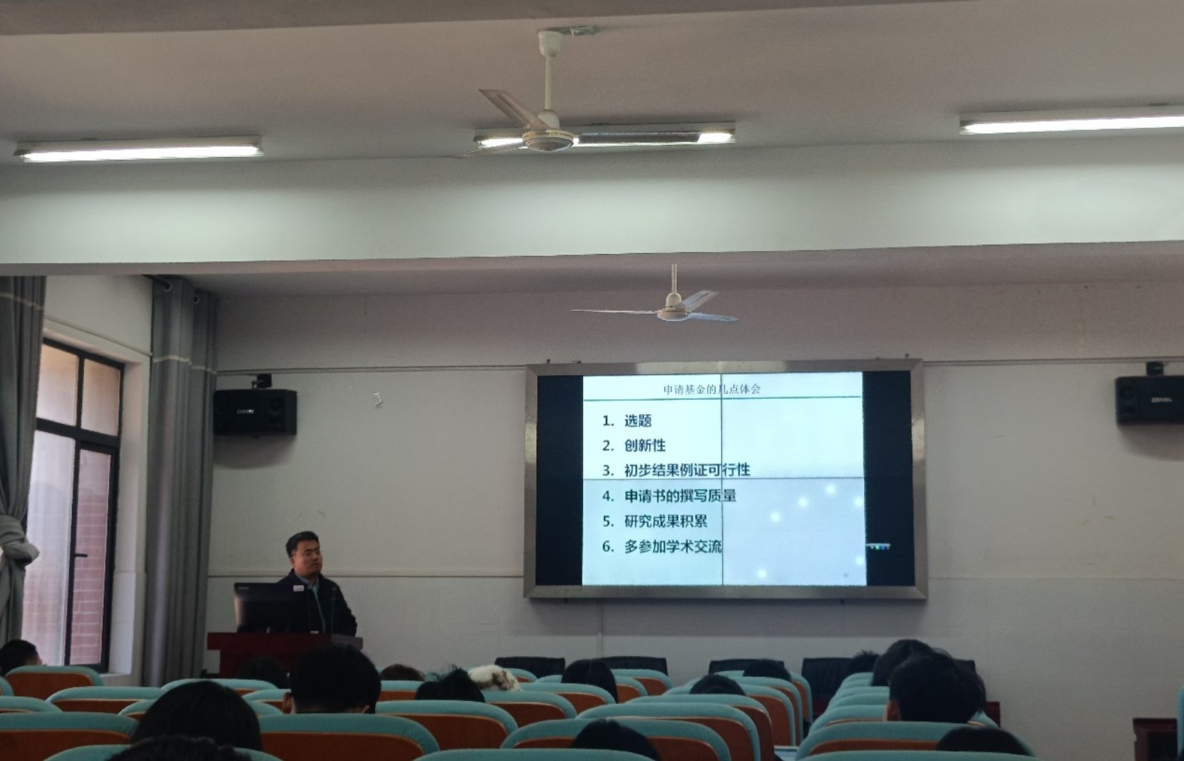 下午,张晓兵教授以丰富的科研经验和多次成功申报国家自然科学基金的实践为基础,深入浅出地讲解了基金申报的关键要点。他从选题的重要性、申请书的撰写技巧、评审专家的关注点等方面进行详细分析,并结合具体案例对常见问题进行了针对性解答。张教授的报告为在场师生提供了宝贵的指导,对提升基金申报成功率具有重要意义。